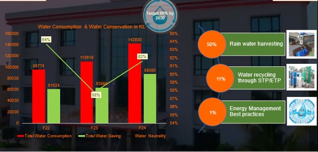 Whilst the overall water consumption has increased over recent years due to expanded production capacities, Shaktiman has achieved around 62% of water savings. The adoption of best practices in energy management has made this possible. 50% of the water has come from rainwater harvesting. In addition, about 11% of the wastewater was recycled and reused through STP and ETP treatment plants. Our goal is to reach 80% water neutrality by 2030.